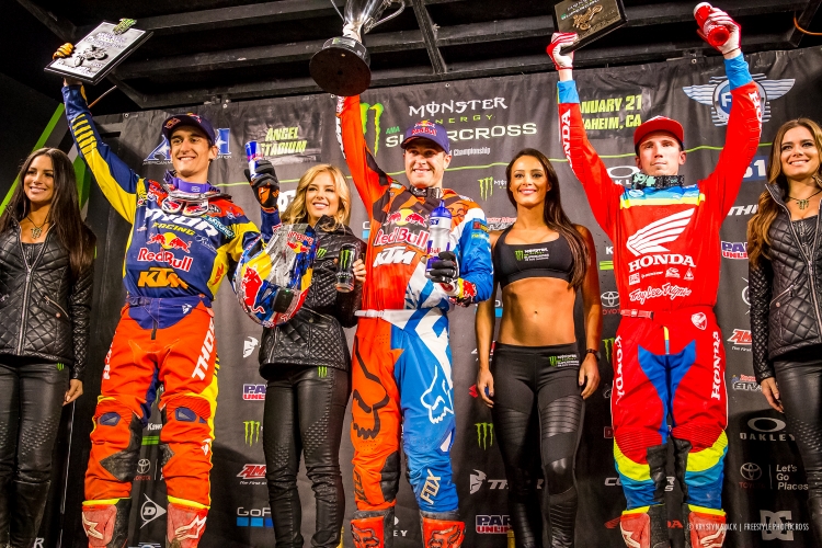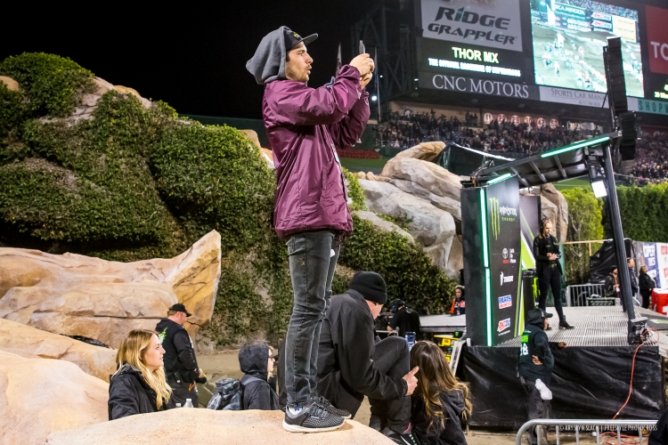 There is something about racing at Angel Stadium of Anaheim that seems to stir up an elevated level of excitement and drama for the evening of racing. Round 3 of Monster Energy AMA Supercross, an FIM World Championship was no exception. Beginning with a third consecutive week of a tarped track due to excessive amounts of rain, we once again didn’t see riders hit the track until timed qualifying practice. Lots of notable events at Round 3, and in no particular order, here are your “Fast Five” most talked about, most notable, and/or most memorable moments from Anaheim 2.